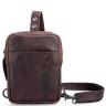 Компактная мужская сумка из натуральной кожи. Имеет длинный ремень, симметрично перестегивающийся на другую сторону, чтобы носить через одно или другое плечо. Спереди карман на магните, с обратной стороны прорезь, чтобы была возможность повесить сумку на пояс к ремню, отстегнув лямку. Сумка закрывается на молнию, внутри одно основное отделение и небольшой плоский карман.